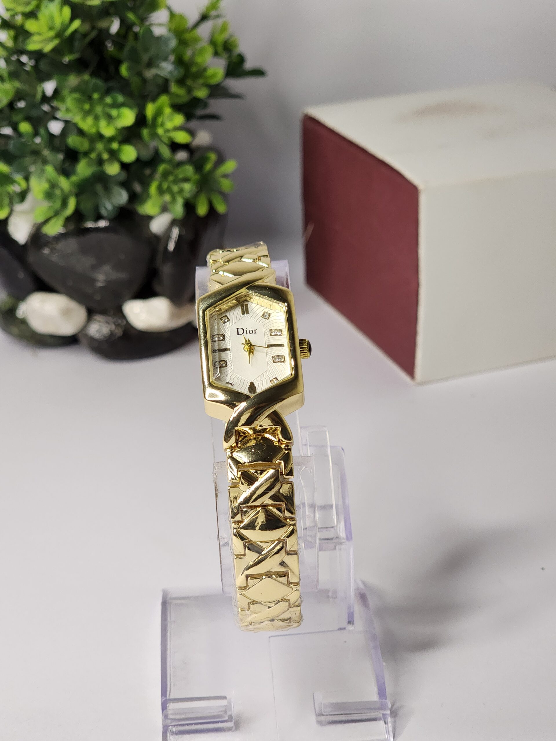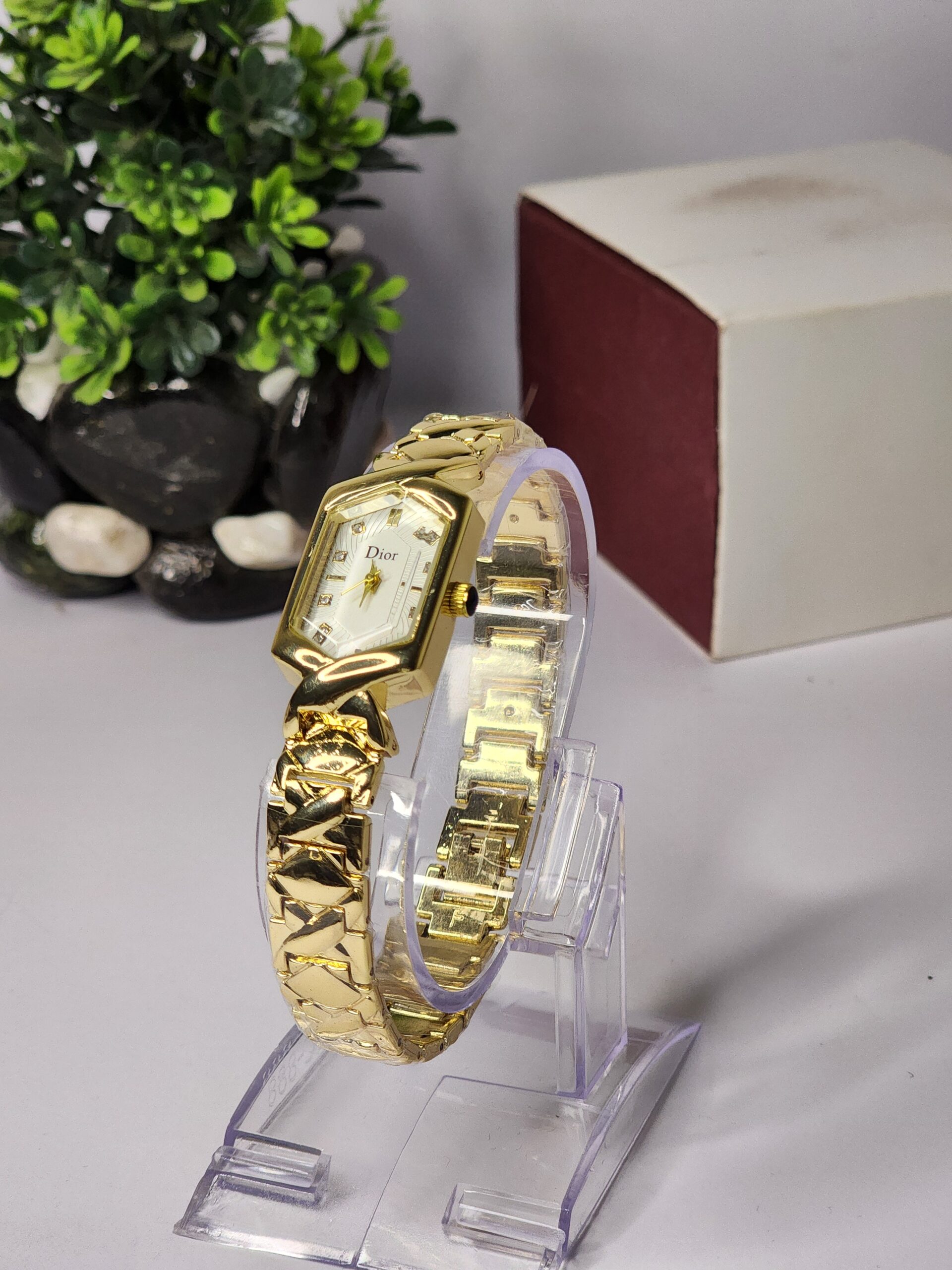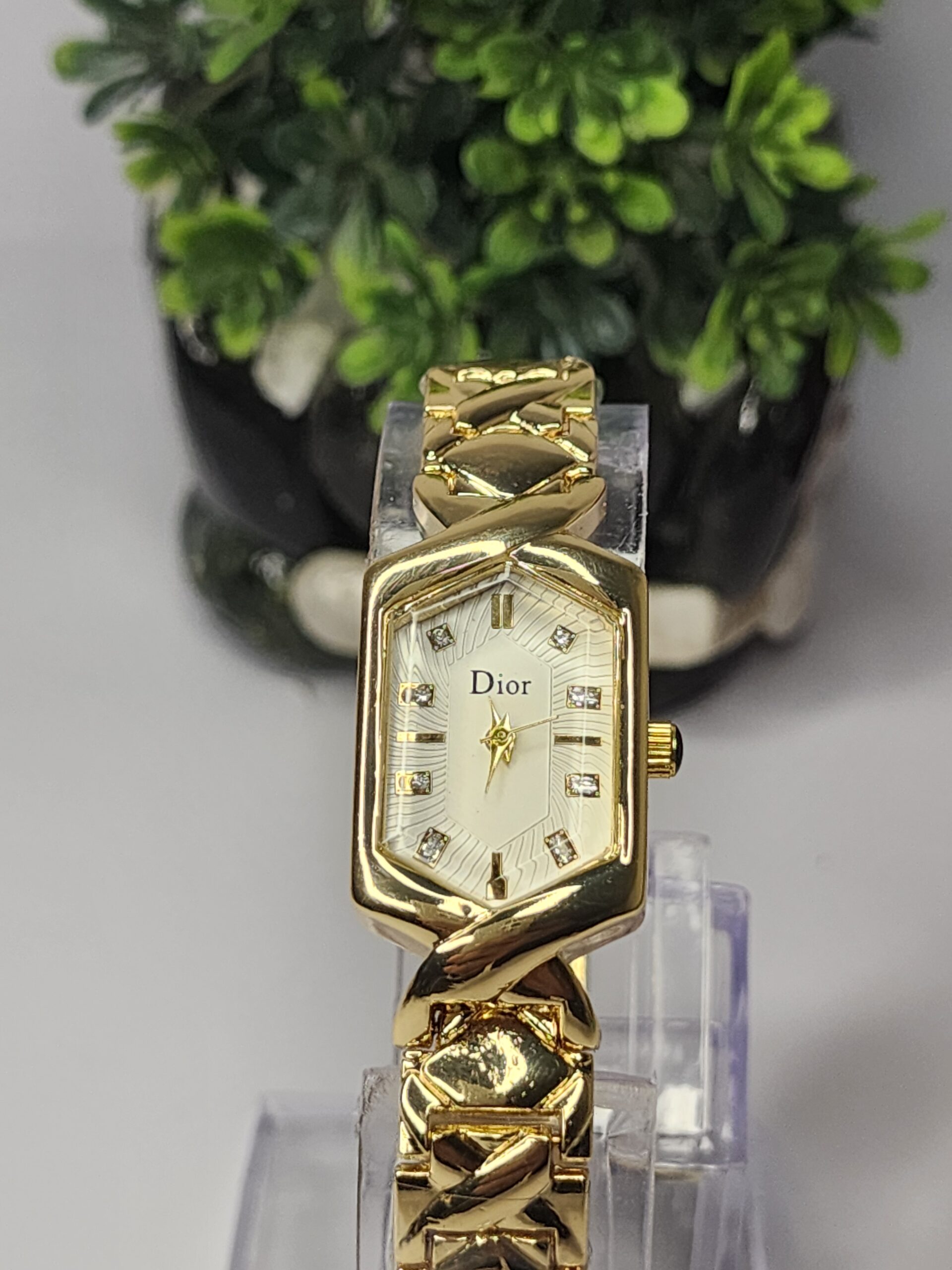 An exquisite women’s watch with a gold-plated petal chain, a sophisticated analogue dial, and a high-end stainless steel construction is the Dior Petal Chain-Gold by Naqoosh E. Araish. It elevates any ensemble and is appropriate for both big events and everyday wear.