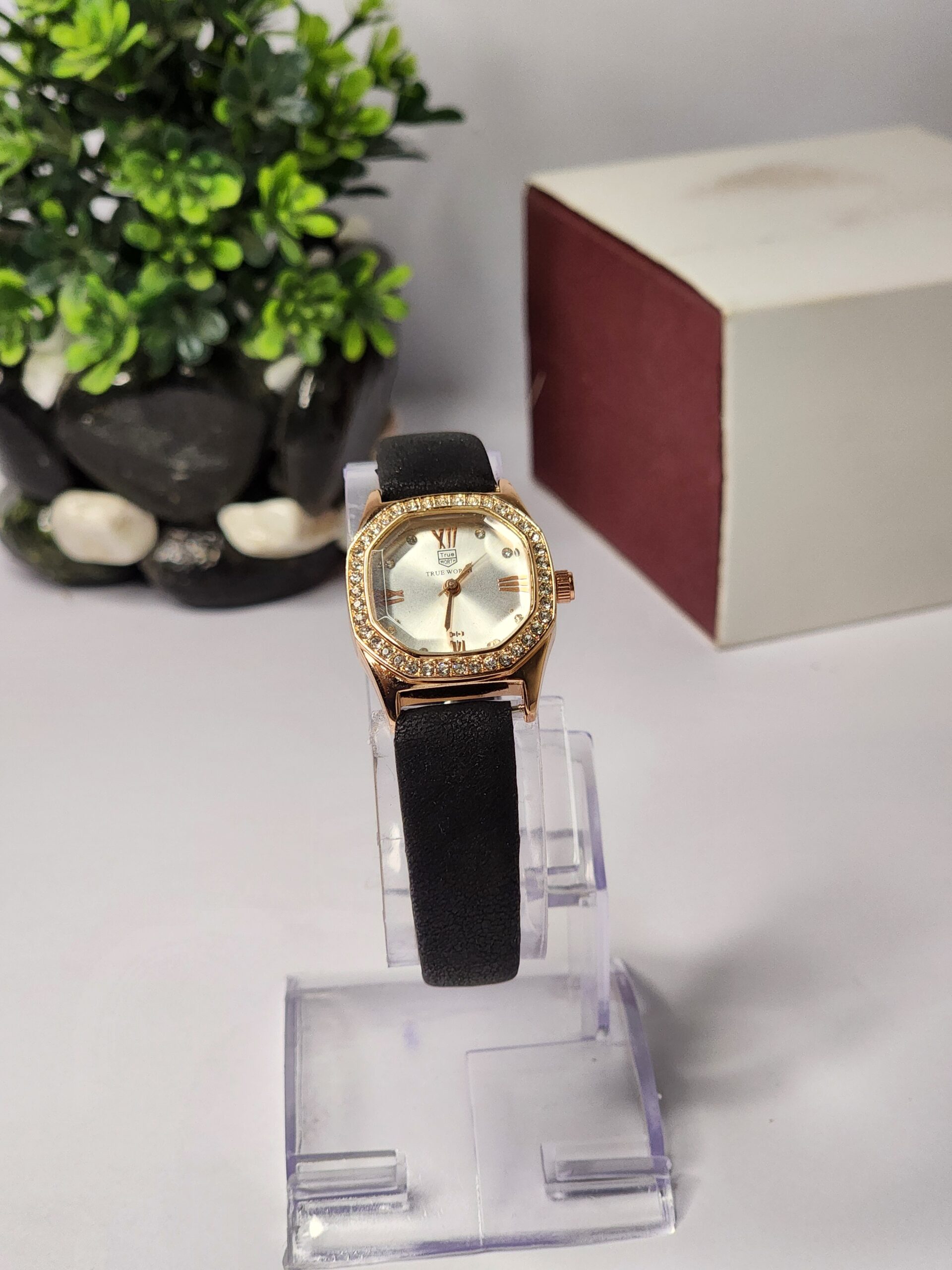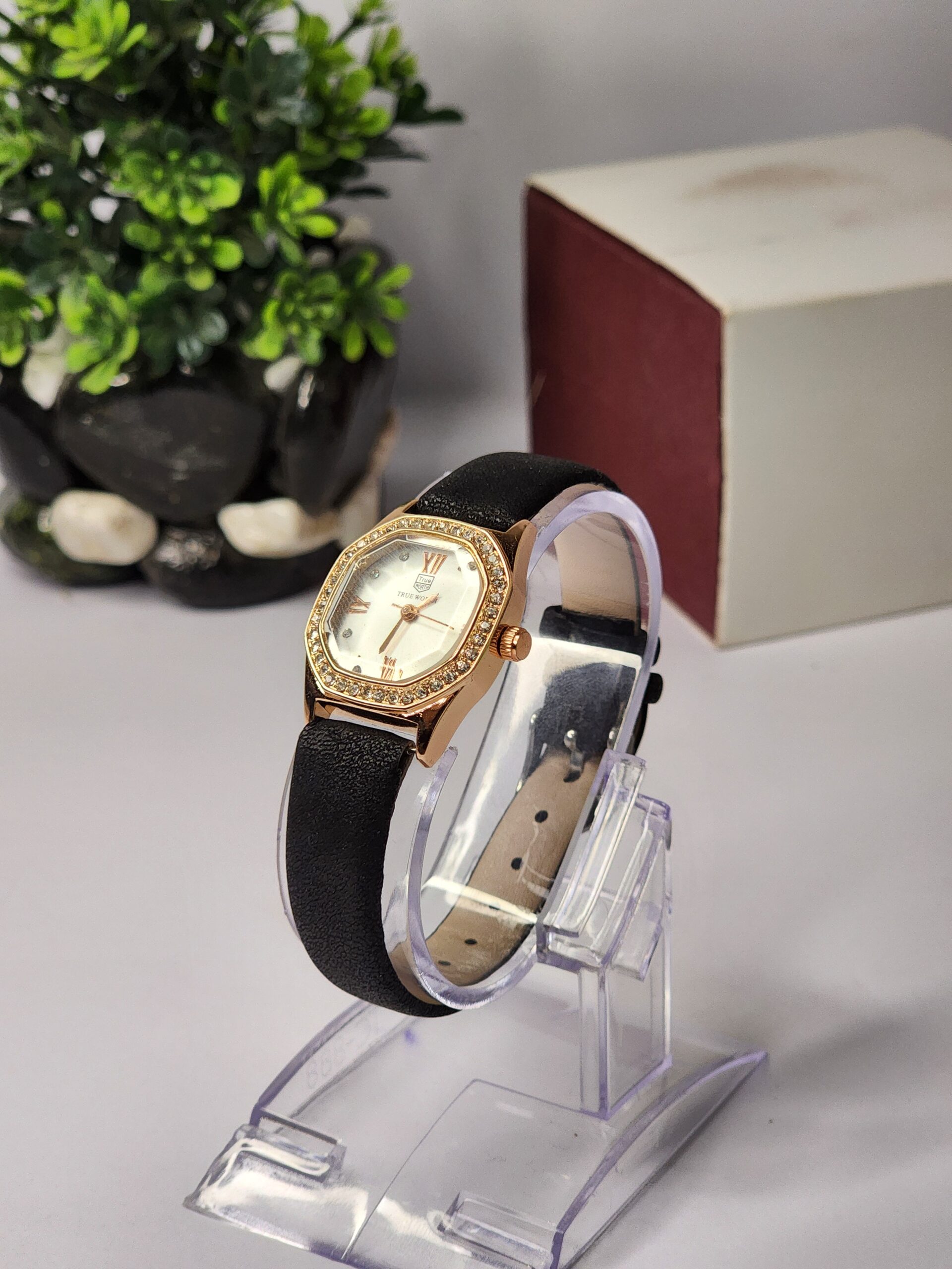 - Classic and Elegant Design: A classic black leather women’s watch that combines elegance and simplicity.